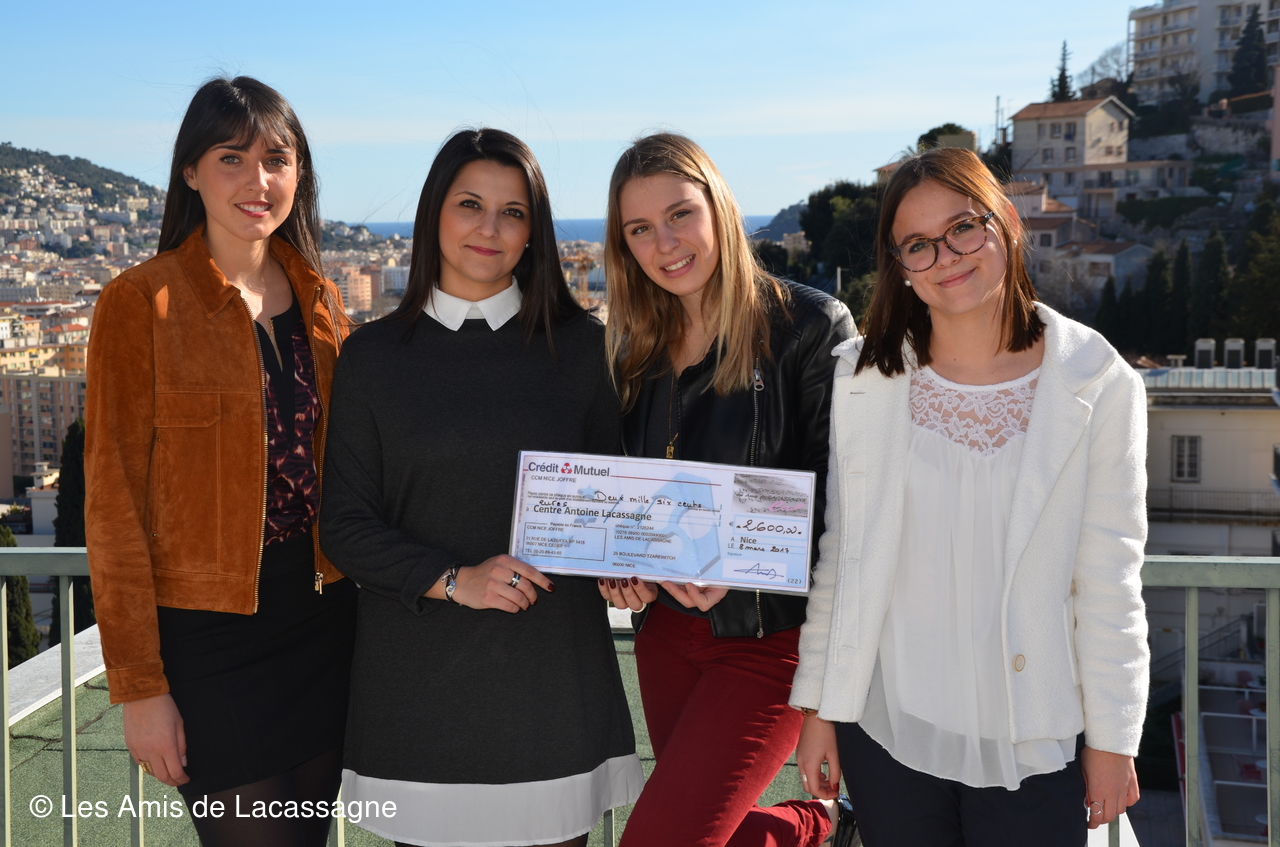 Dans le cadre de leurs études à l'Institut Universitaire de Technologie (IUT) en Gestion des Entreprises et des Administrations (GEA), Lucie, Emilie, Carla et Margaux de l’association CLEM ont organisé un concert au profit des « Amis de Lacassagne ».La recette - 2500€ - a été affectée à la rénovation artistique du tunnel du Centre Antoine Lacassagne projetée en 2017, visant à améliorer et humaniser les conditions d’accueil des patients, et la vie quotidienne du personnel.